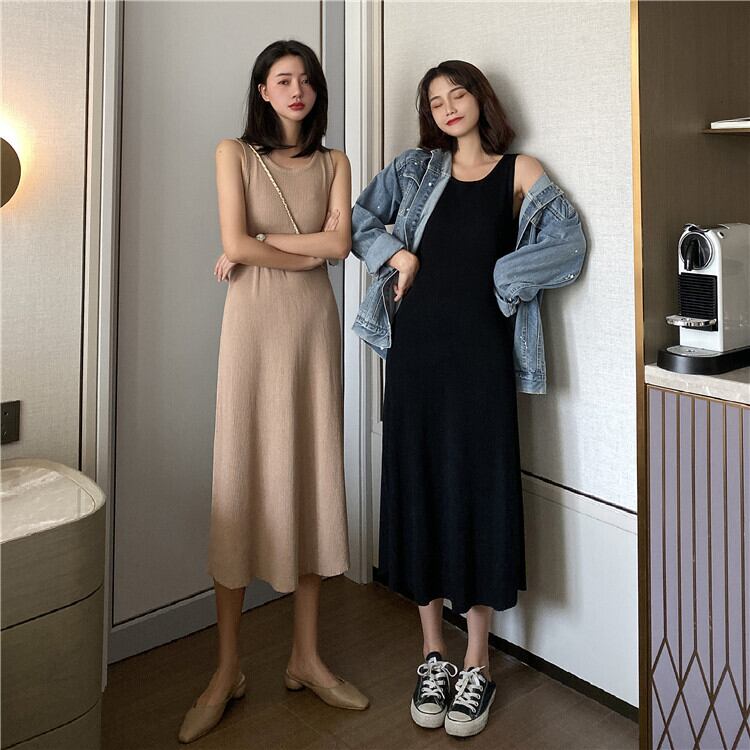 春先スリム ニット ベスト ワンピース