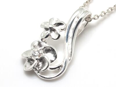 キュービックジルコニア×プルメリアモチーフ シルバーネックレス