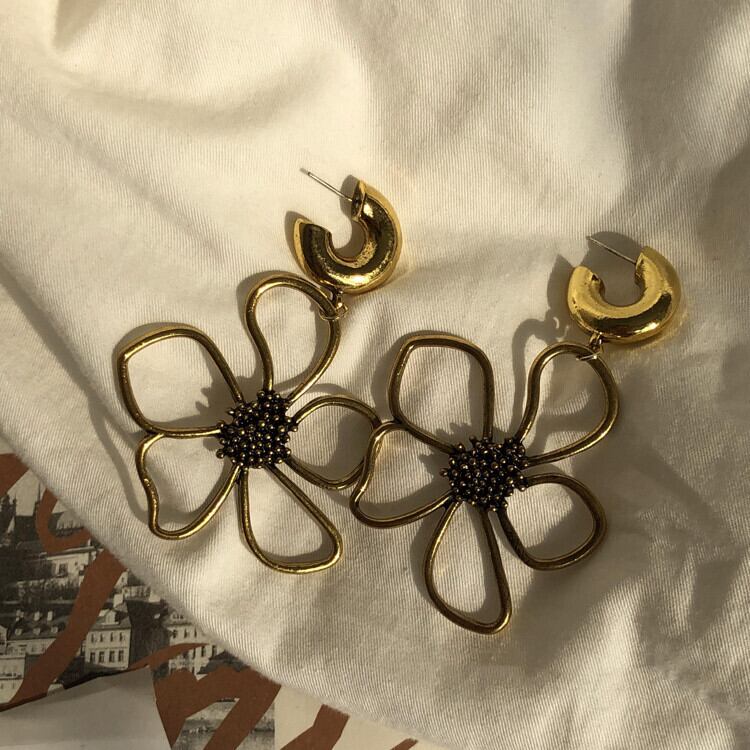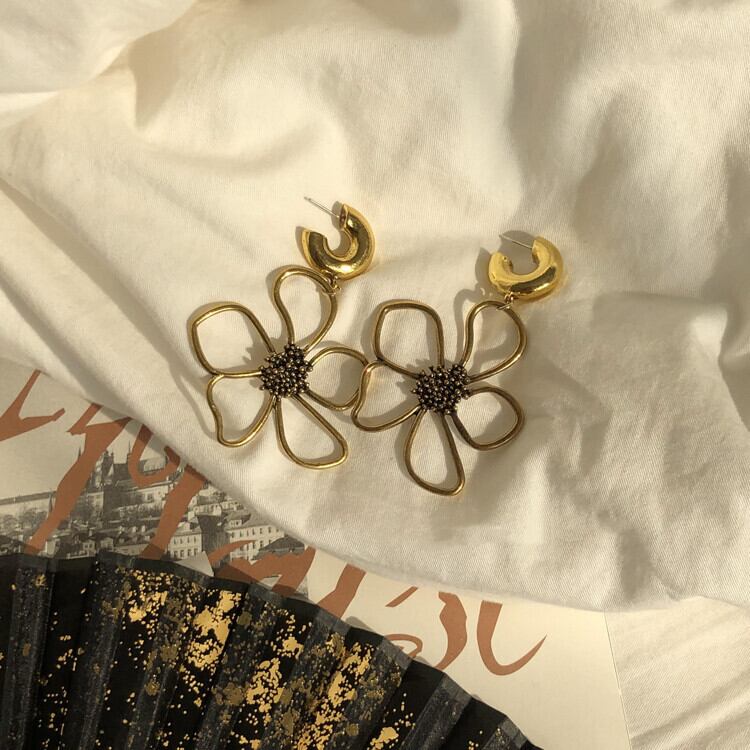 ヴィンテージ感漂う花デザインのピアス。シンプルでありながら存在感抜群。