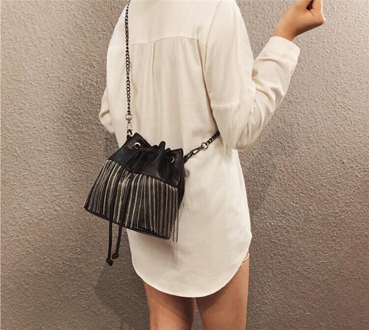 夏 タッセルチェーン バケツバッグ